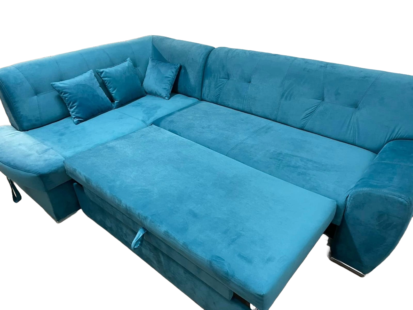 Coltarul Extensibil Nadia este ideal pentru adeptii liniilor clasice. Fabricat pe plasa de arcuri din otel- carbon,cu spatiu generos pentru dormit 124×210 cm, practic si usor de extins,prevazut cu lada depozitare. Coltarul este tapitat cu stofa de calitate superioara. Pentru confortul sporit va oferim 2 perne mici confectionate din stofa, umplutura din spuma poliuretanica.