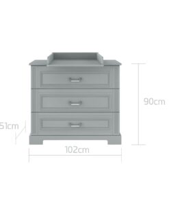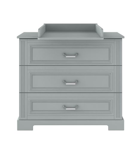 Comoda din colectia Ines Gri este locul perfect pentru a schimba un bebelus, datorita mesei de schimb potrivite (din aceeasi colectie), mai mult, ansamblul mesei de schimb nu lasa urme pe ea. Comoda este in sine o piesa de mobilier care ii placuta ochiului. Este clasica, eleganta si realizata cu atentie la cele mai mici elemente, inclusiv manere de portelan realizate manual.
