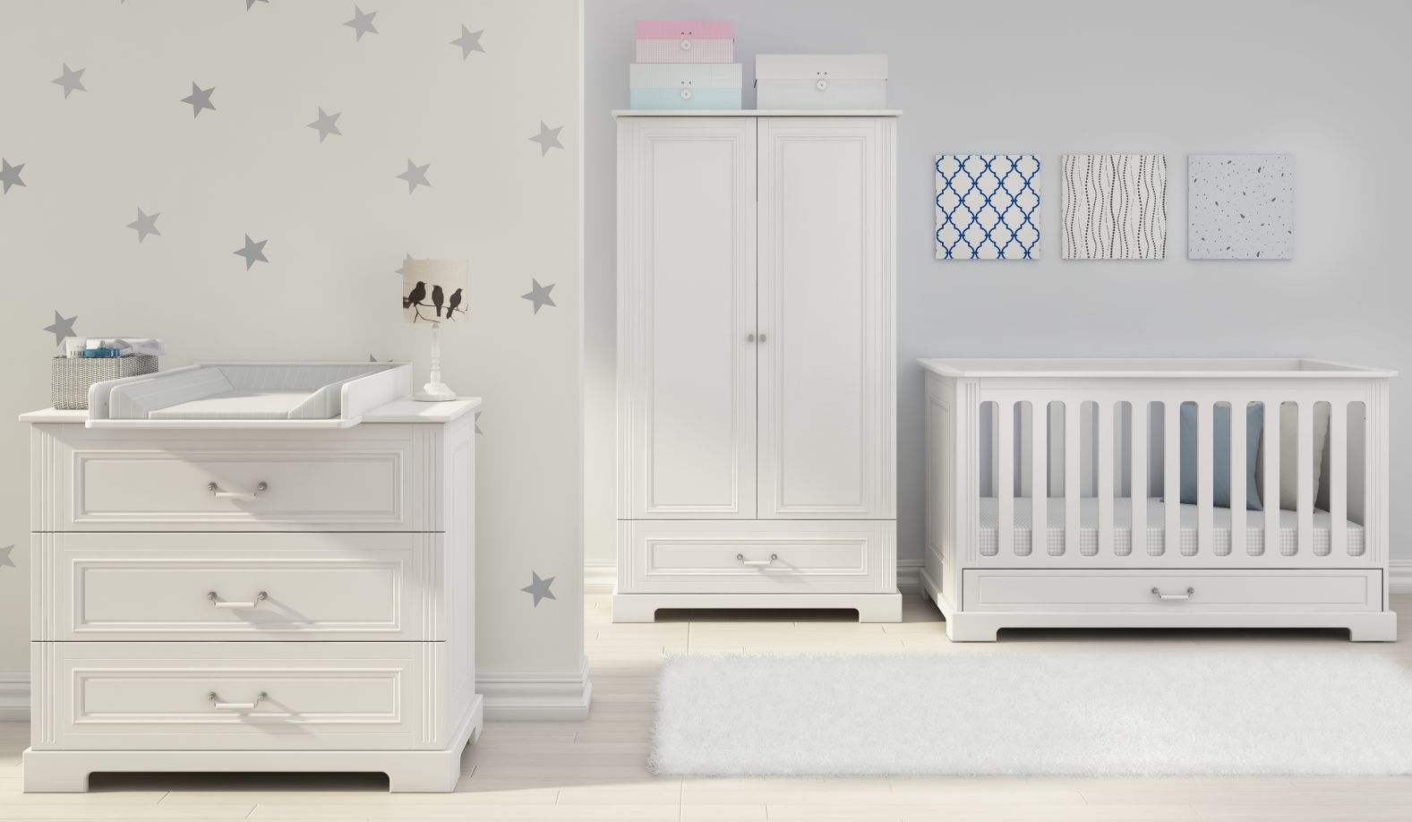 – fabricat din MDF vopsit alb
