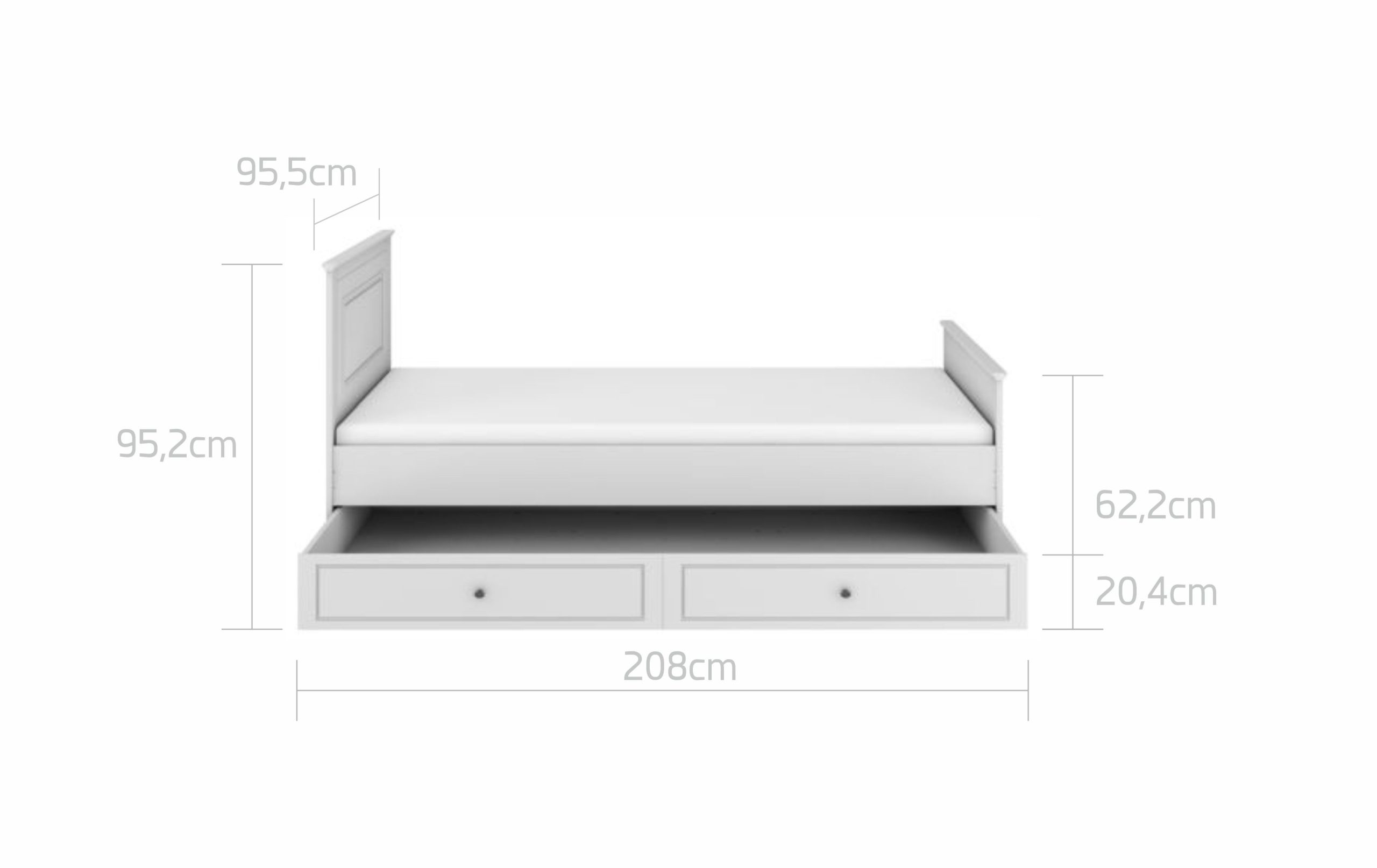 – patul are o dimensiune pentru saltea de 90×200 cm;